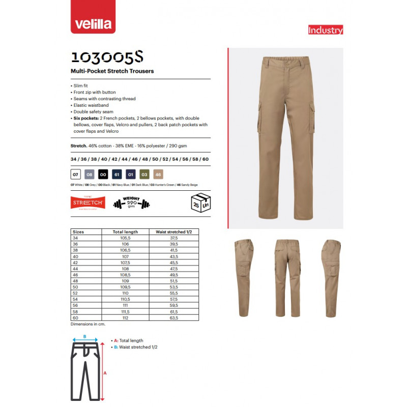 Spāņu firmas Velilla elastīgas darba bikses 103005S, haki zaļas, 52. izmērs