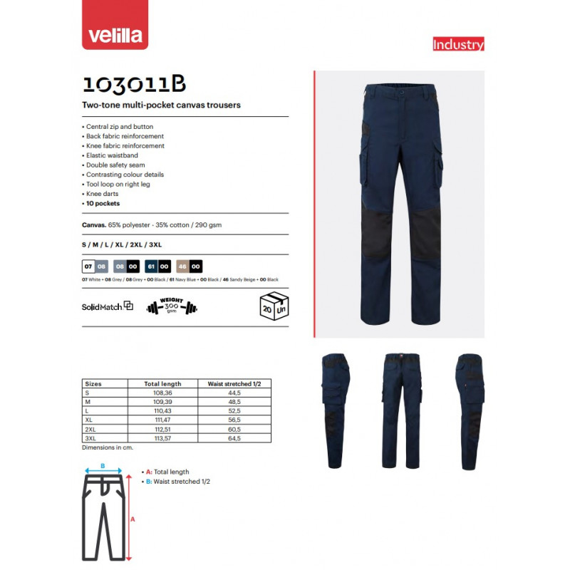 Spāņu firmas Velilla vairāku kabatu, divu krāsu, canvas audekla darba bikses 103011B bēšas, XL izmērs
