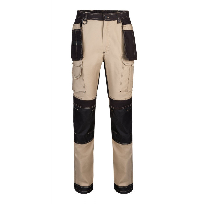 Spāņu firmas Velilla elastīgas izturīga audekla darba bikses 103019S bēšas/melnas, L izmērs