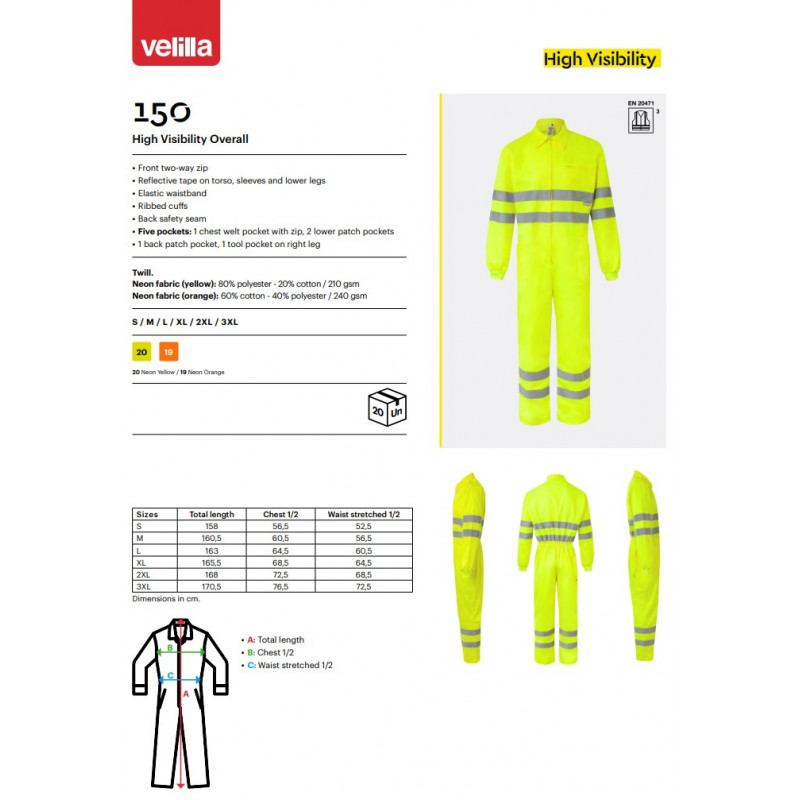 Spāņu firmas Velilla atstarojošais kombinezons dzeltens 150, XL izmērs