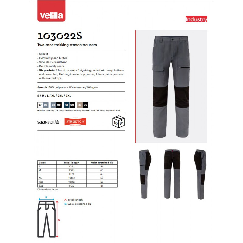 Spāņu firmas Velilla elastīgas izturīga audekla darba bikses 103022S pelēkas/melnas, M izmērs