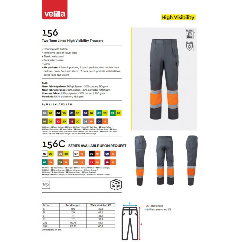 Spāņu firmas Velilla augstas redzamības divu krāsu darba bikses 156 tumši zils/oranžs, L izmērs