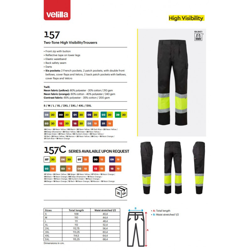 Spāņu firmas Velilla augstas redzamības vairāku kabatu divu krāsu darba bikses 157 tumši zils/oranžs, XL izmērs