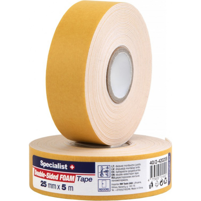 Jūsu iepirkumu grozs ir tukšs! Specialist+ putu lente WH, 5 m x 25 mm