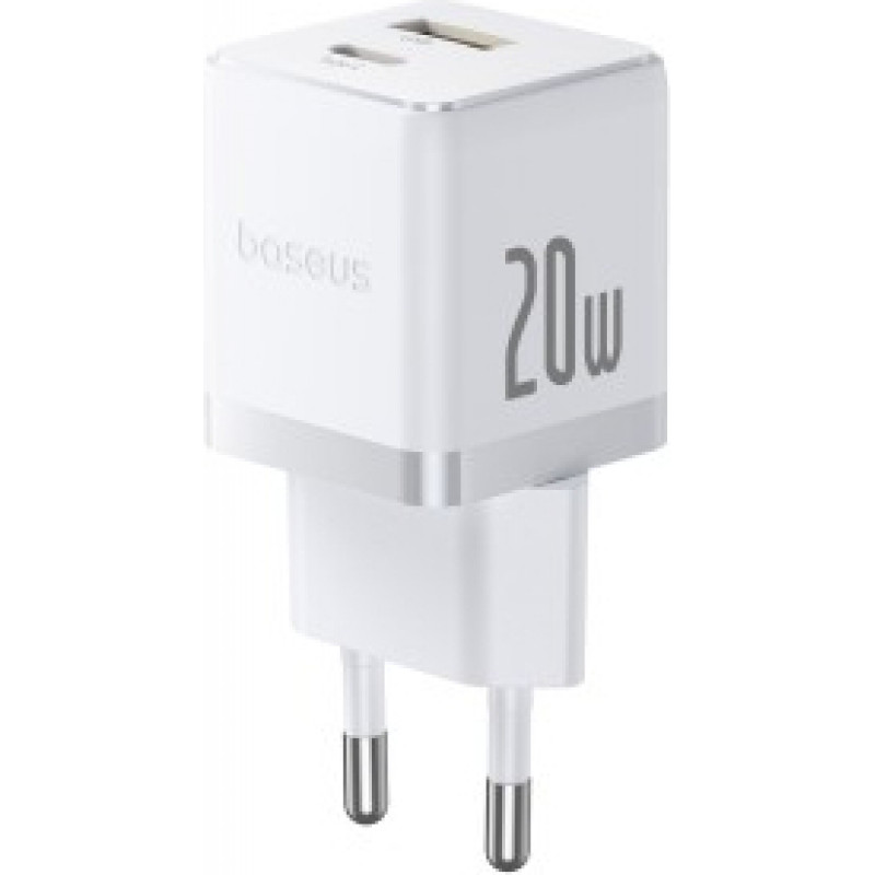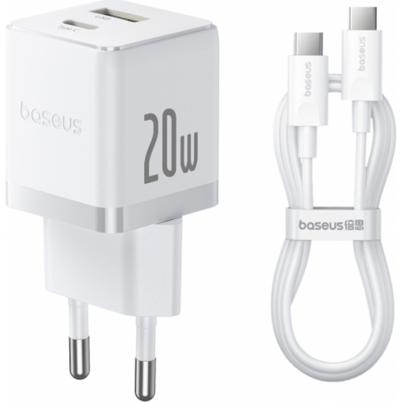 Baseus Sienas ātrais lādētājs Palm 20W USB + USB-C QC3.0 PD3.0 ar USB-C kabeli 1 m, balts