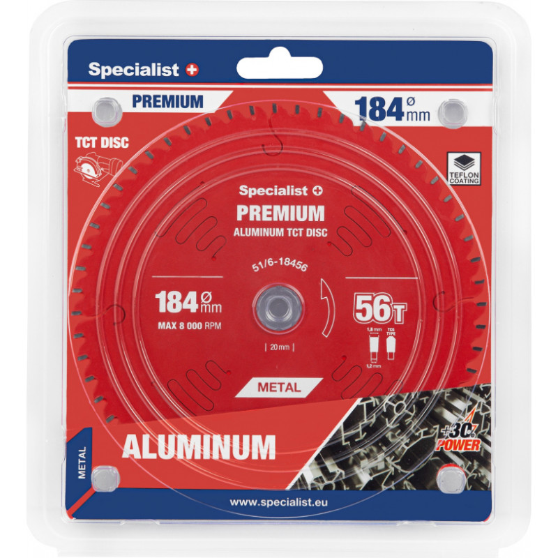 Jūsu iepirkumu grozs ir tukšs! Specialist+ griešanas disks Aluminium 184x56Tx20/16mm