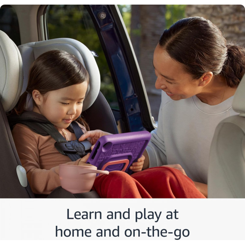 Ietaupiet līdz pat 70 ASV dolāriem, iegādājoties pilnvērtīgu planšetdatoru (nevis rotaļlietu) bērniem vecumā no 3 līdz 7 gadiem, 6 mēnešu abonementu Amazon Kids+ saturam un bērniem drošu vāciņu ar iebūvētu statīvu (salīdzinājumā ar atsevišķi iegādātajām precēm). Iekļauta 2 gadu bezrūpīgas lietošanas garantija — ja planšetdators saplīst, atgrieziet to, un mēs to nomainīsim bez maksas. Ekrāns ir izgatavots no pastiprināta alumīnija silikāta stikla, un katram Fire Kids planšetdatoram ir izturīgs bērniem paredzēts vāciņš, kas paredzēts aizsardzībai pret kritieniem un triecieniem. Iekļauts Amazon Kids+ — iekļauts 6 mēnešu Amazon Kids+ abonements, godalgots digitālais abonements ar tūkstošiem grāmatu bez reklāmām, interaktīvu spēļu, video un lietotņu — tagad ar atlasītām Disney un Atriebēju sērijām bez reklāmām! Bērni var iepazīties ar saturu no uzticamiem zīmoliem, piemēram, Disney, Nickelodeon un PBS Kids, tostarp izglītojošām STEM aktivitātēm, valodu apguvi un izklaidi, ko viņi mīl — visu vienuviet. Pēc 6 mēnešiem jūsu abonements tiks automātiski atjaunots katru mēnesi, sākot no 5,99 ASV dolāriem mēnesī plus piemērojamais nodoklis. Jūs varat to jebkurā laikā atcelt, apmeklējot Amazon vecāku informācijas paneli vai sazinoties ar klientu apkalpošanas dienestu. Viegli lietojamas vecāku kontroles funkcijas — attālināti pārskatiet bērna aktivitātes, lai uzzinātu vairāk par to, kas jūsu bērnam patīk, iestatiet laika ierobežojumus vai piešķiriet prioritāti grāmatām un mācību lietotnēm, nevis izklaidei. Ātrdarbīga ierīce ar ilgu akumulatora darbības laiku — 8 collu HD displejs, 3 GB RAM (par 50 % vairāk nekā 2022. gada versijā), 32 GB, līdz pat 1 TB paplašināma atmiņa (nopērkama atsevišķi). Akumulatora darbības laiks visu dienu — līdz pat 13 stundām grāmatu, raidījumu un mūzikas baudīšanas. Drošība pirmajā vietā — Amazon Family Trust komanda sadarbojas ar bērnu drošības, privātuma un attīstības jomas līderiem, lai nodrošinātu, ka mēs palīdzam ģimenēm veidot drošu un veselīgu digitālo uzvedību. Ar izturīgu, bērniem drošu korpusu — komplektā ietilpst: Fire HD 8 Kids (2024. gada versija) planšetdators ar Wi-Fi, Amazon Kid-Proof korpuss ar statīvu/rokturi — Amazon strāvas adapteris, USB-C (2.0) uzlādes kabelis, iebūvēts uzlādējams akumulators un 6 mēnešu Amazon Kids+ abonements (automātiski atjaunojas par attiecīgo cenu).