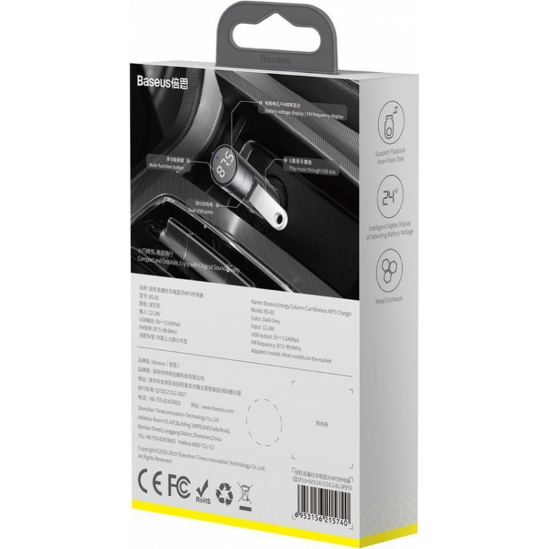 Jūsu iepirkumu grozs ir tukšs! Baseus Auto FM modulators ar Bluetooth 12-24V 2xUSB 3.1A, LED indikators, pelēks