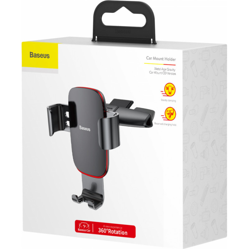 Baseus Metal Age Gravity Car Mount (CD versija), melns, melns