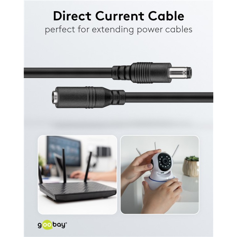 Goobay Līdzstrāvas pagarinājuma kabelis, 5 m 5,5x2,1 mm melns 2x0,5 mm² max 24 VDC 120 W
